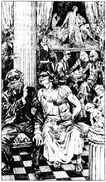 Пели они весьма искусно, с подлинной страстью, так что я поневоле заслушался, но на словах «Тебя я лаской огневою и обожгу и утомлю» нимфа вдруг положила мне голову на плечо, а пальцами как бы ненароком скользнула под мою рубашку, чем привела меня в совершеннейший ужас. Охваченный паникой, я оглянулся на Эндлунга. Тот, заливисто хохоча, лупил веером по рукам своего морщинистого кавалера. Кажется, лейтенанту приходилось не легче, чем мне. ![]() Певицы были вознаграждены бурными рукоплесканьями, к которым присоединилась и моя поклонница, что на время избавило меня от ее домогательств. Распорядитель поднялся на сцену и объявил: – По желанию нашего дорогого Филадора сейчас будет исполнен так всем полюбившийся танец живота. Танцует несравненная госпожа Дезире, специально ездившая в Александрию, чтобы постичь это высокое древнее искусство! Попросим! Под аплодисменты на возвышение поднялся упитанный господин средних лет в ажурных чулках, коротенькой накидке, вытканной блестками юбочке и с голым животом – круглым и противоестественно белым (надо думать, от свежего бритья). Аккомпаниатор заиграл персидскую мелодию из оперетки «Одалиска», и «госпожа Дезире» принялась качать бедрами и ляжками, отчего ее изрядное чрево все заколыхалось волнами. Мне это зрелище показалось крайне неаппетитным, но публика пришла в полнейшее неистовство. Со всех сторон кричали: – Браво! Чаровница! Тут уж моя нимфа совсем распоясалась – я едва поймал ее руку, опустившуюся на мое колено. – Ты такой неприступный, обожаю, – шепнула она мне в ухо. Симеон Александрович вдруг резко притянул к себе мистера Карра и впился ему в губы долгим поцелуем. Я поневоле взглянул на Фому Аникеевича, с невозмутимым видом стоявшего за креслом великого князя, и подумал: сколько нужно выдержки и силы воли, чтобы нести свой крест с таким достоинством. Если б Фома Аникеевич знал, что я здесь, в зале, он, наверное, провалился бы от стыда сквозь землю. Слава богу, в рыжей бороде узнать меня было невозможно. А дальше произошло вот что. Лорд Бэнвилл с невнятным криком выбежал из-за своей колонны, в несколько прыжков преодолел расстояние до столика, схватил мистера Карра за плечи и оттащил в сторону, выкрикивая что-то на своем шепелявом наречии. Симеон Александрович вскочил на ноги, вцепился мистеру Карру в платье и потянул обратно. Я тоже приподнялся, понимая, что на моих глазах разворачивается отвратительный, опасный для монархии скандал, однако дальнейшее превзошло мои наихудшие опасения. Бэнвилл выпустил мистера Карра и с размаху влепил его высочеству звонкую оплеуху! Музыка оборвалась, танцовщица испуганно присела на корточки, и стало очень-очень тихо. Слышно было только, как возбужденно дышит лорд Бэнвилл. Это было неслыханно! Оскорбление действием, нанесенное августейшему дому! Да еще иностранцем! Кажется, я застонал вслух, и довольно громко. И лишь в следующую минуту я сообразил, что никакой августейшей особы здесь нет и быть не может. Пощечину получил некий господин Филадор, человек в алой маске. Брови Симеона Александровича растерянно изогнулись – кажется, в такие ситуации его высочеству попадать еще не доводилось. Генерал-губернатор непроизвольно схватился за ушибленную щеку и сделал шаг назад. Милорд же, более не проявлявший ни малейших признаков волнения, неспешно потянул с 